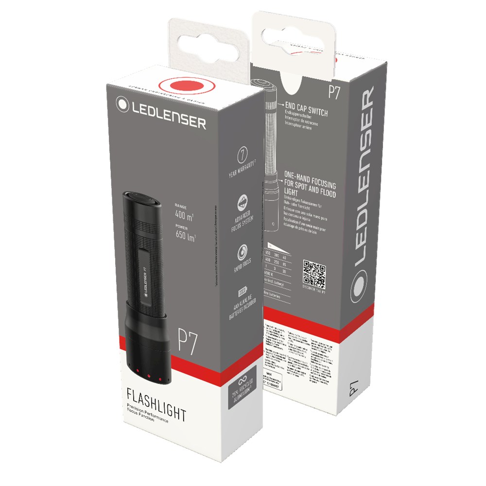 De Ledlenser P7 is één van de meest iconische zaklampen van Ledlenser en de opvolger van de legendarische P7 Core. Deze lamp is uitgerust met een aantal upgrades en blijft een van de meest innovatieve zaklampen op de markt. Het gepatenteerde focussysteem zorgt voor een soepele overgang van een brede lichtbundel dichtbij naar een scherp licht voor veraf, terwijl de Rapid Focus-technologie het mogelijk maakt de lamp met één hand te bedienen. De P7 werkt op vier AAA-alkaline batterijen, wat zorgt voor een betrouwbare energievoorziening en daarnaast heeft hij een hoogwaardige behuizing die gemaakt is van 75% gerecycleerd aluminium. Belangrijkste kenmerken: