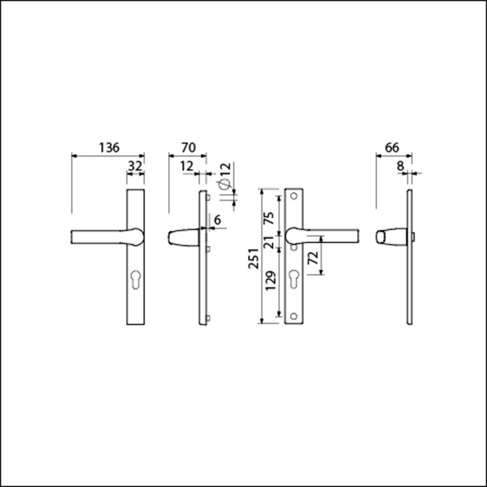 Buitenschild 12 mm met deurkruk 379 ROTA verend vastdraaibaar,
