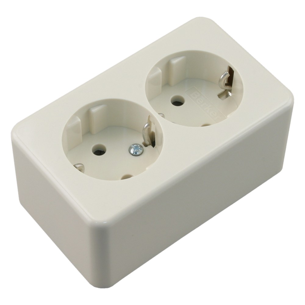 Berker contactdoos opbouw, 2-voudig, randaarde polarwit