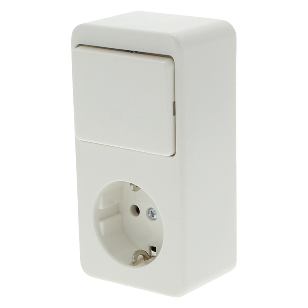 Berker combinatie stopcontact en schakelaar opbouw, wissel, randaarde polarwit