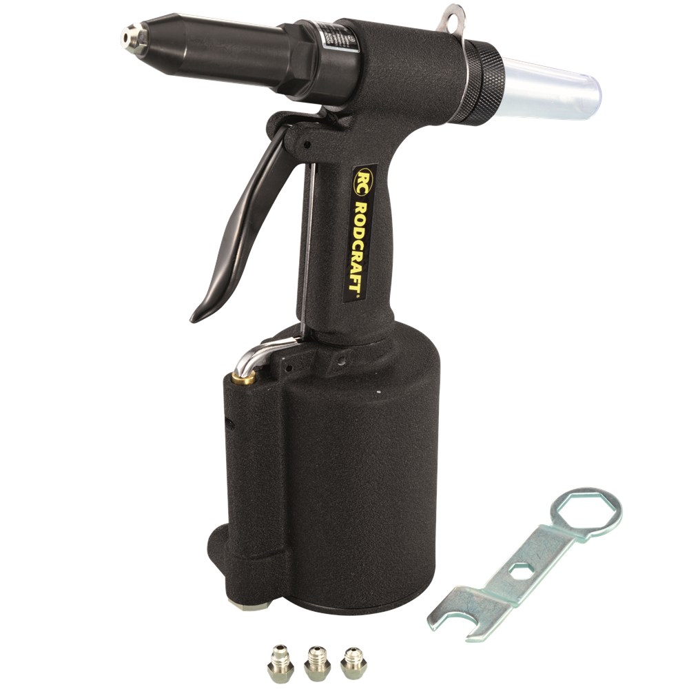 Handige popnageltang tot 5mm met opvangbak voor resten van de afgebroken klinknagelpennen. Duurzaam lucht-hydraulisch krachtvermenigvuldigingssyseem systeem en ophangpunt voor gebruik van balancers. Met 4 verschillende maten mondstukken. Alleen te gebruiken voor koper, aluminium of zachtere materialen.