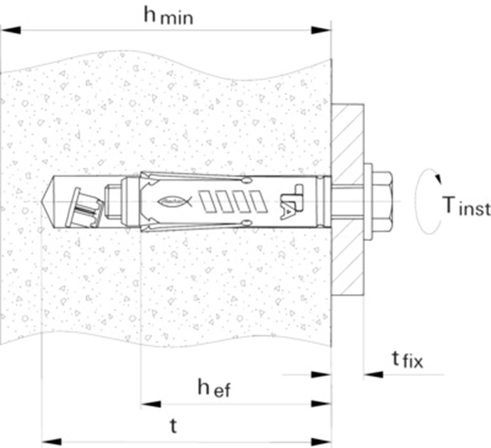 - Bepalend voor de sterkte van de bevestiging is het boorproces. Het is essentieel dat de schildikte door afspringen van het beton aan de achterzijde van het boorgat niet verder gereduceerd wordt. Wij adviseren eerst met een boordiameter 10 mm rustig voor te boren en vervolgens met de voorgeschreven boordiameter na te boren.