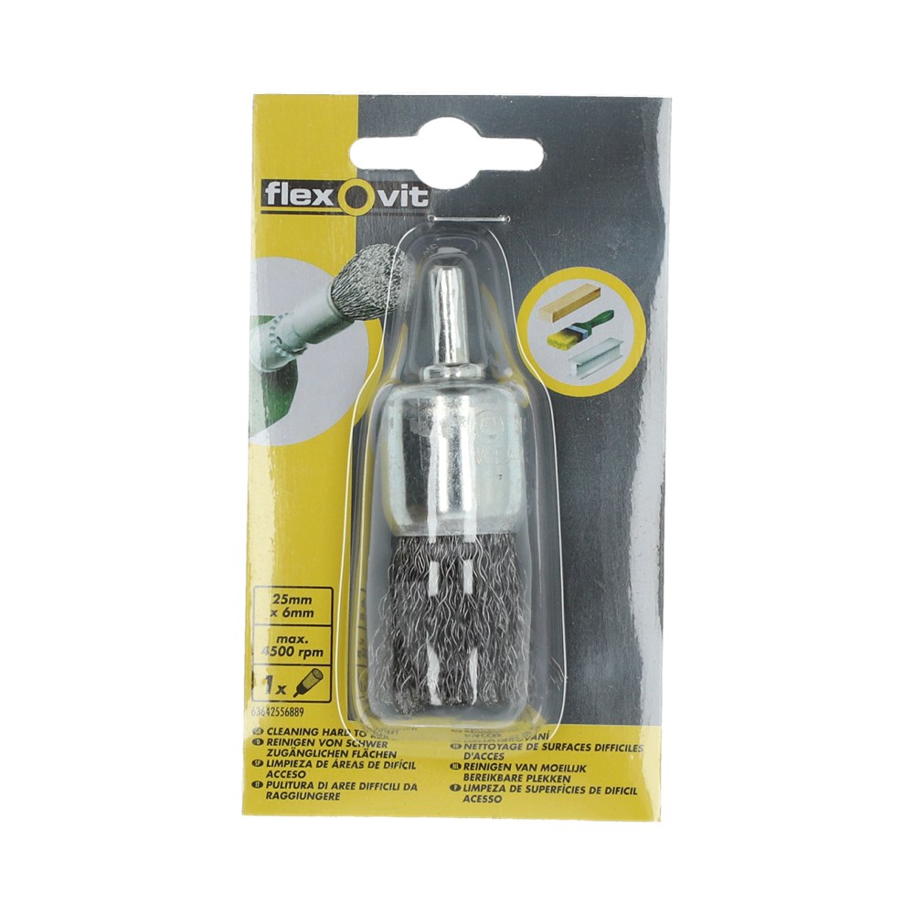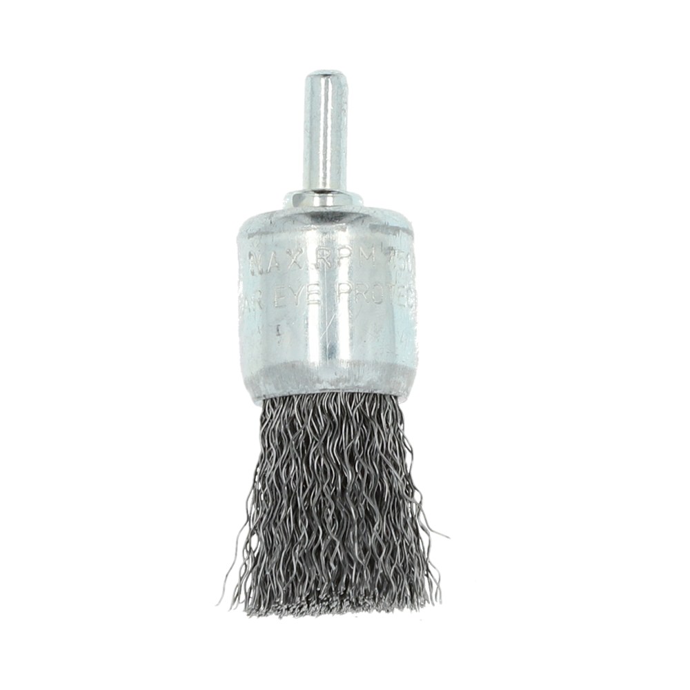 Penseelborstel voor de rechte slijper met gegolfd staaldraad is geschikt voor het ontroesten en ontbramen van laag- en ongelegeerde staalsoorten.