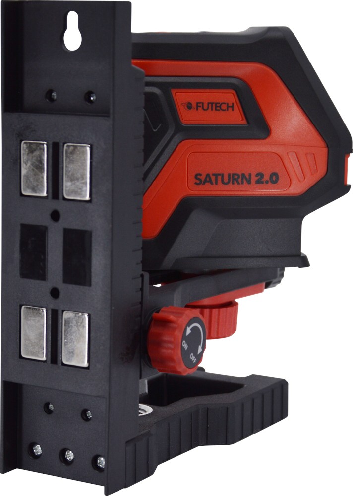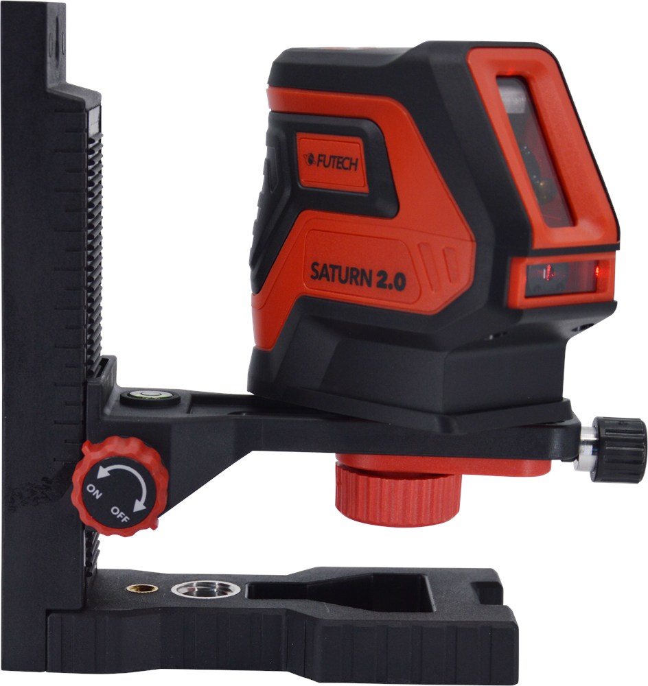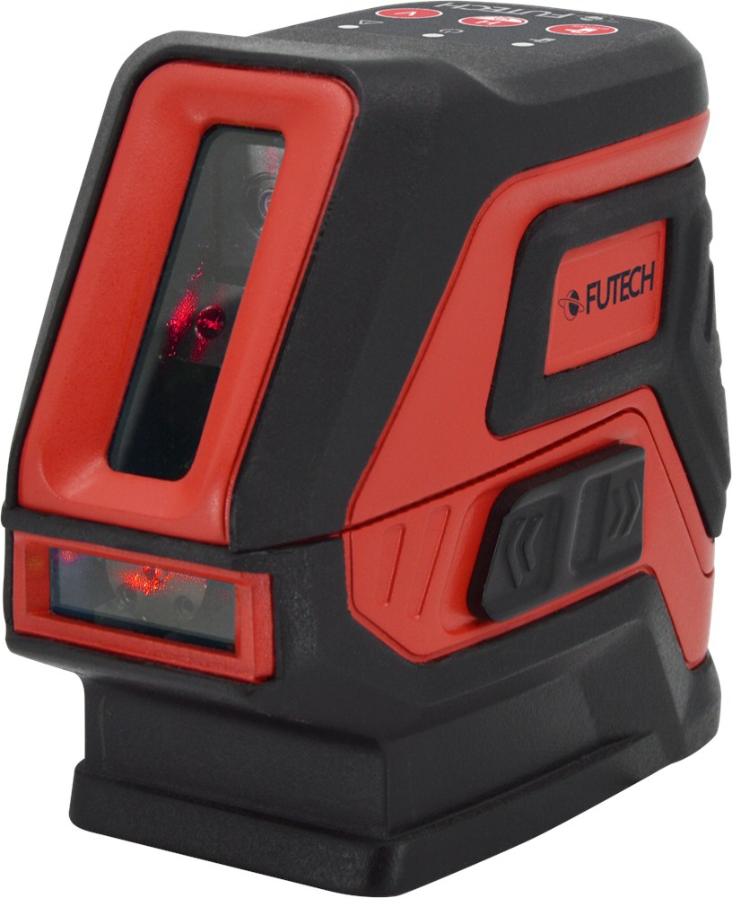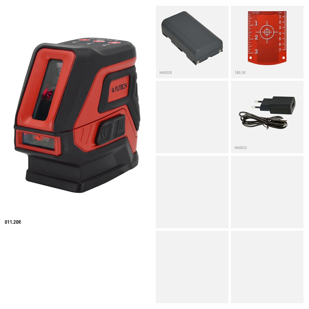 Lijnlaser met 1 rode horizontale en 1 verticale lijn. Pendelnivellering met 2mm/10m nauwkeurigheid en bereik van 50m met ontvanger (optie).