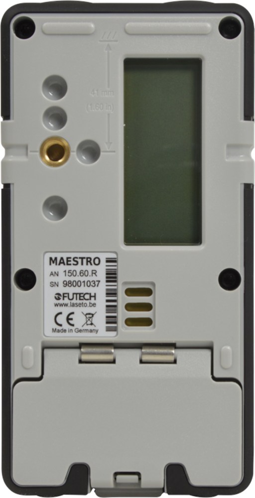 Ontvanger met mm-aanduiding voor rode rotatielasers met bereik van 400m. Ontvangstveld van 90mm en aanduidingen op LCD display (op voor- en achterzijde van het toestel), LEDs (op voorzijde) en geluidsignalen. Geleverd met klem.