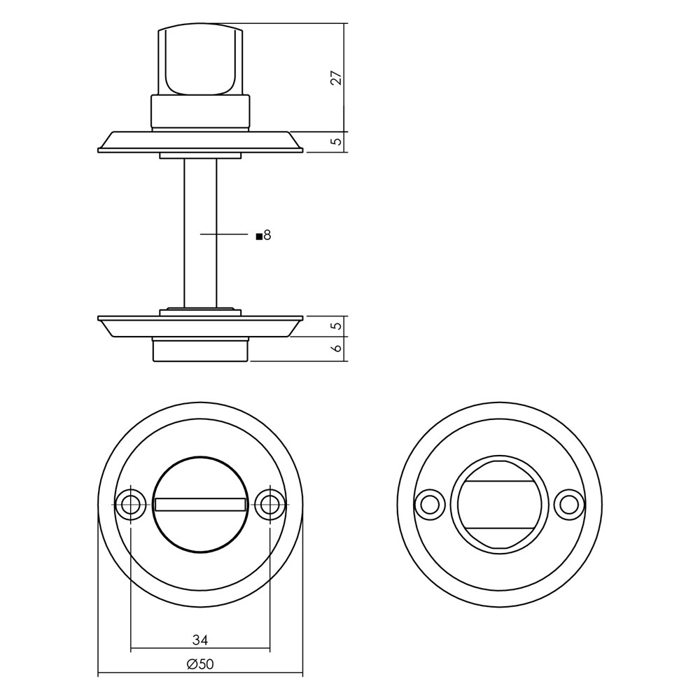 WC-sluiting ø50x5mm met stift 8x8mm