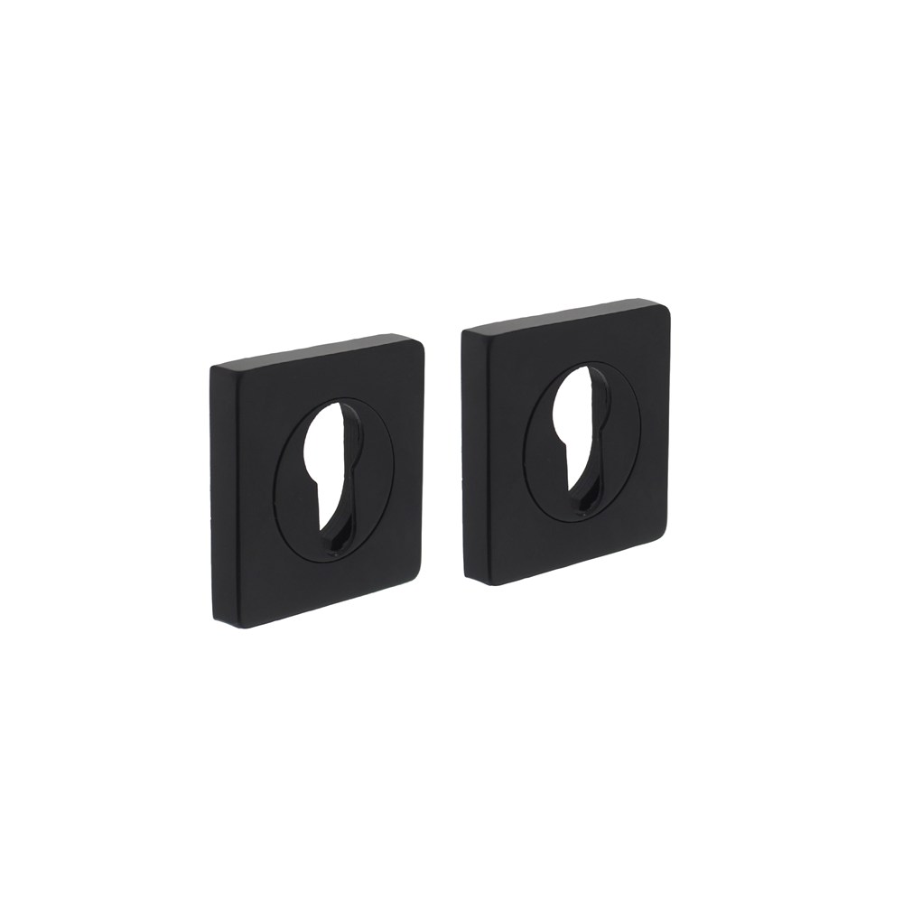 Deze vierkante rozet met profielcilindergat is uitgevoerd in mat zwart. Deze rozet wordt per paar geleverd inclusief bevestigingsmateriaal.