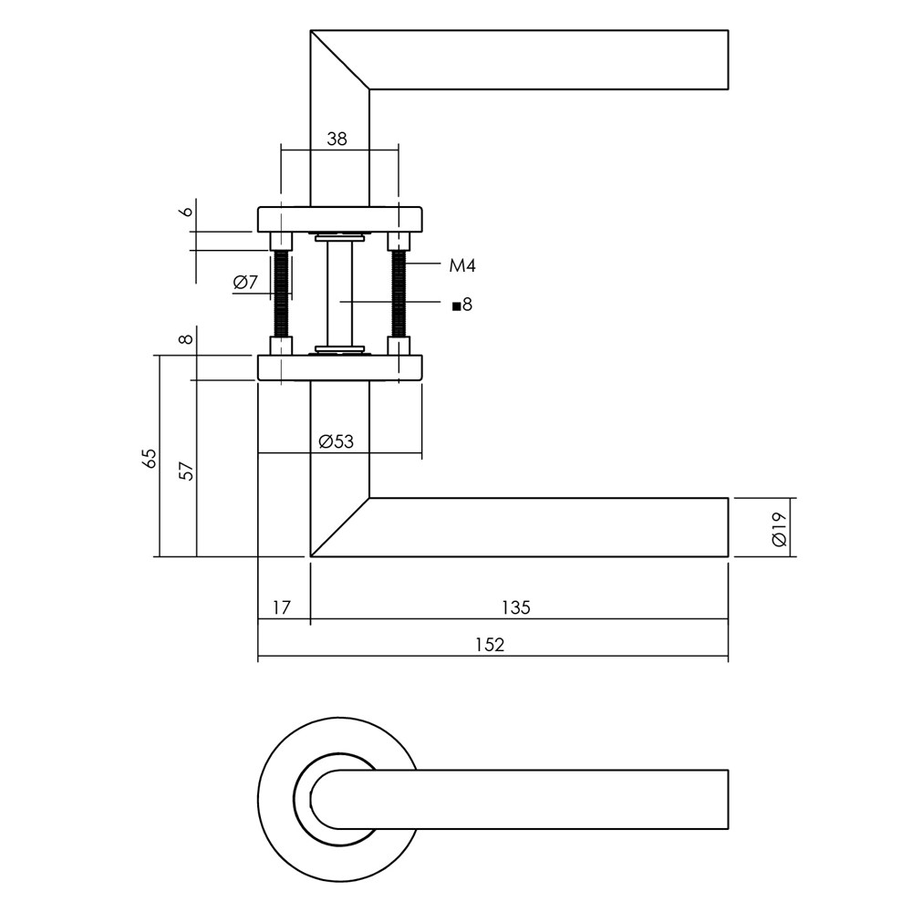 Deurkruk Hoek 90° op rozet verdekt