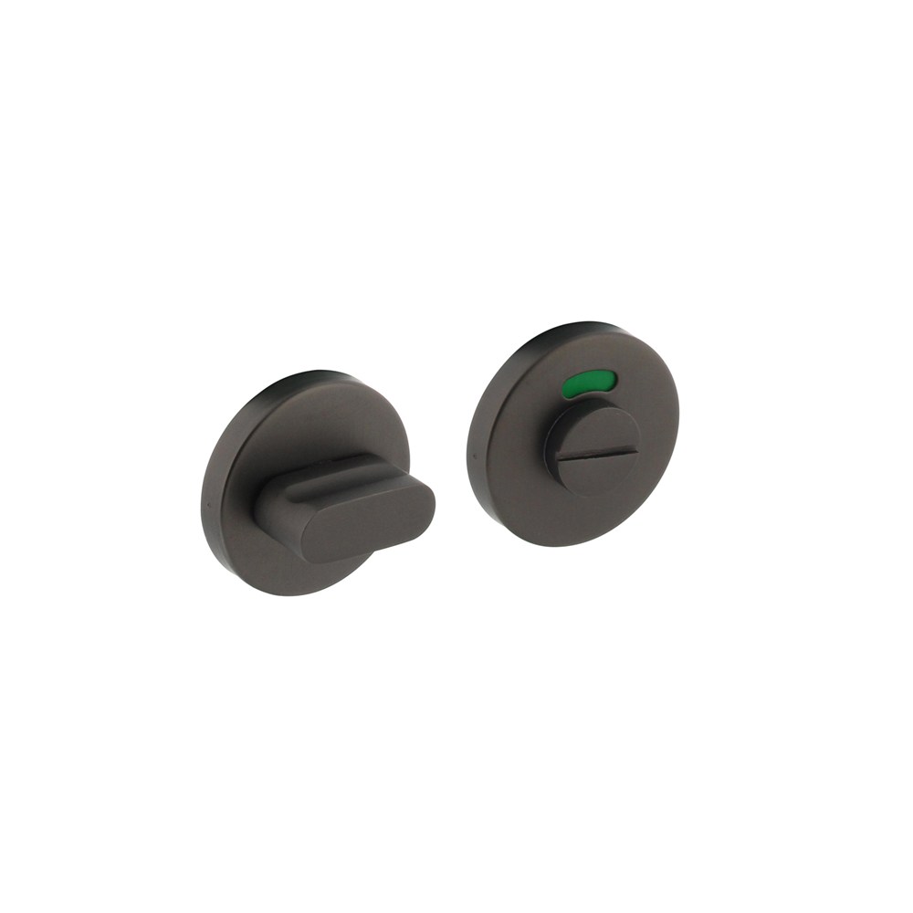Een toilet-/badkamersluiting zorgt ervoor dat u een deur gemakkelijk kunt openen en afsluiten. Deze ronde wc-sluiting is uitgevoerd in roestvast staal en voorzien van een antracietgrijze coating. De wc-sluiting heeft een verdekte bevestiging en de rozet is voorzien van nokken, waardoor hij beter op zijn plek wordt gehouden. De wc-sluiting wordt per set geleverd inclusief bevestigingsmateriaal voor montage.