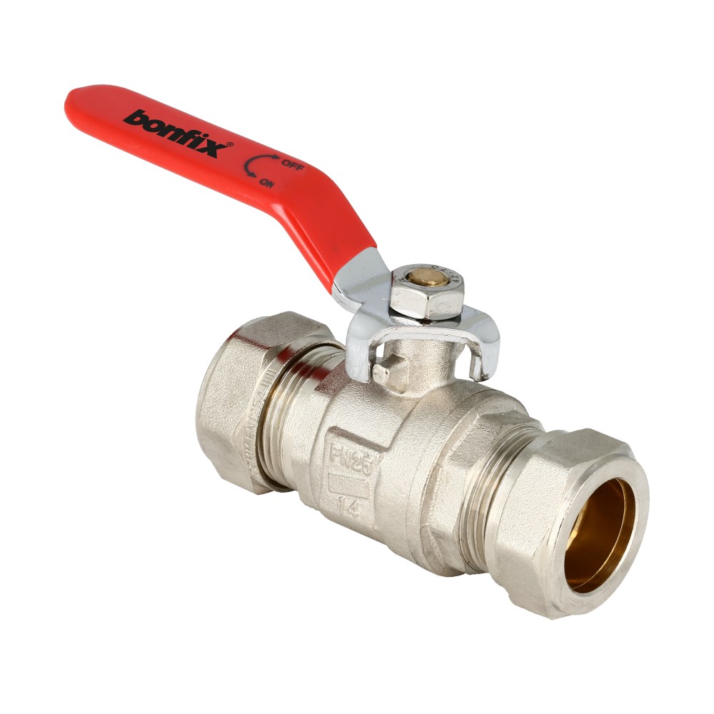 Zakverpakking: Kranen. Kogelkraan met rode hendel.