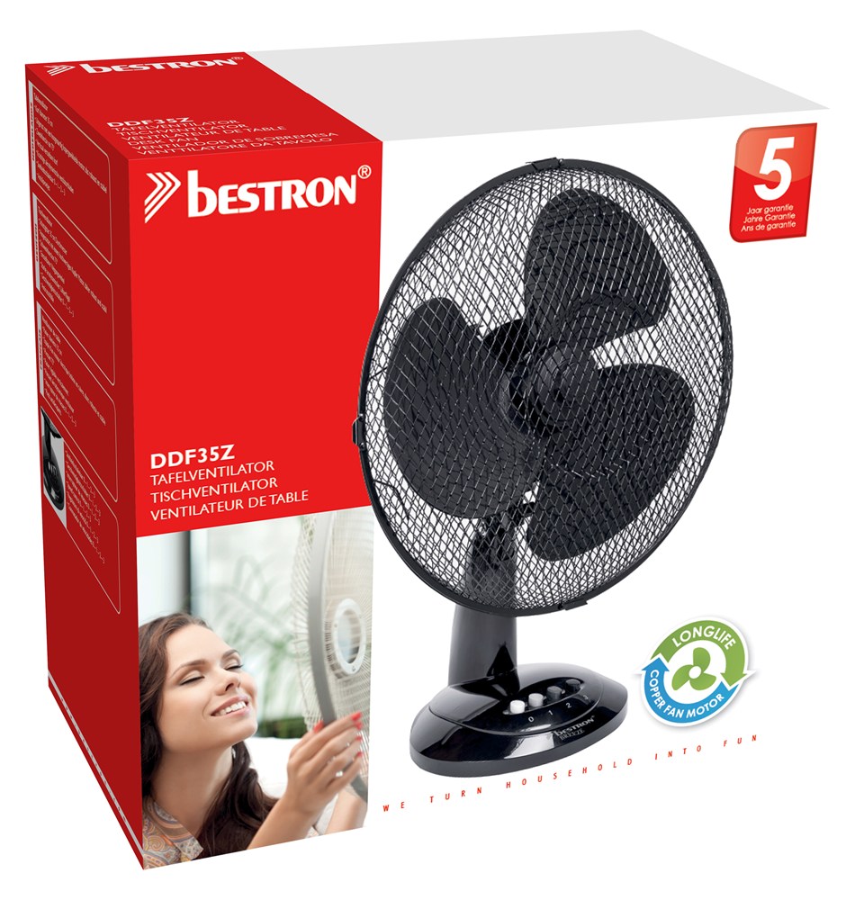 Tafelventilator van Bestron. Uitgerust met een hoogwaardig kopergewikkelde motor, dus robuust en stabiel