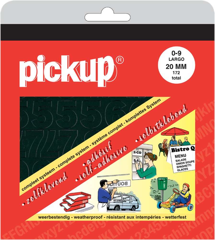 Cijfers in diverse afmetingen in zwart en wit in lettertype largo.