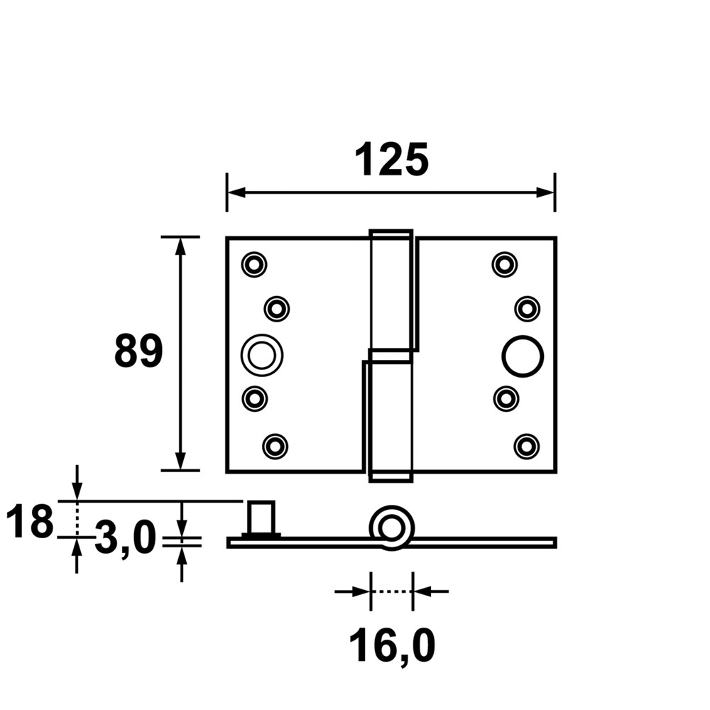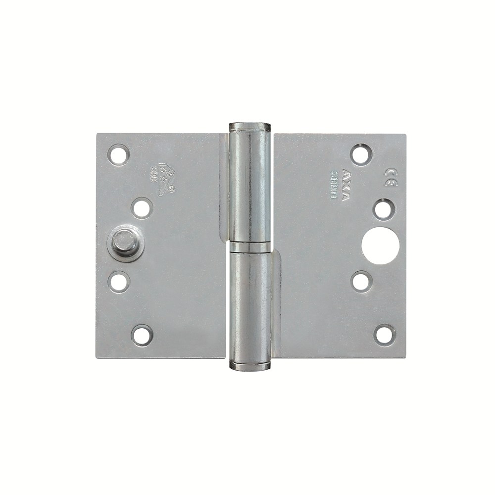 Solide, lichtlopende, inbraakwerende stalen AXA veiligheids kogelstiftpaumelle met een hoog draagvermogen en rechte hoeken.