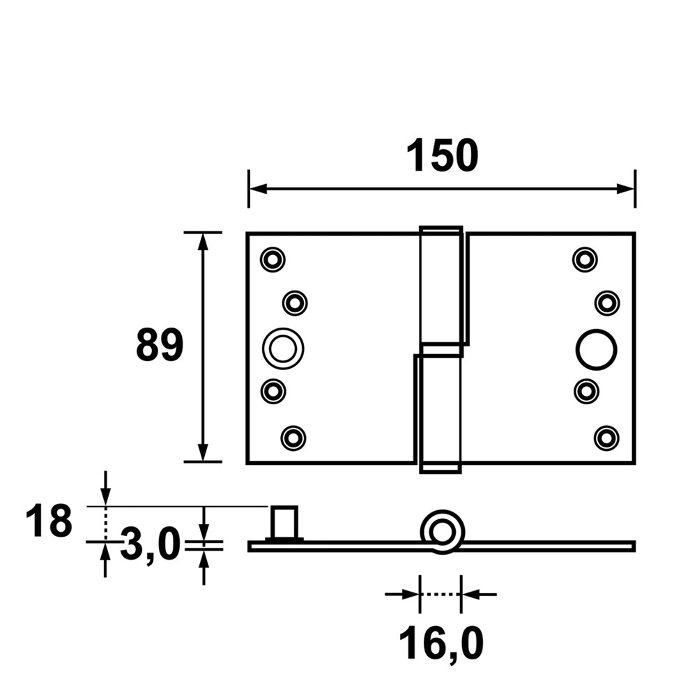 Solide, lichtlopende, inbraakwerende stalen AXA veiligheids kogelstiftpaumelle met een hoog draagvermogen en rechte hoeken.