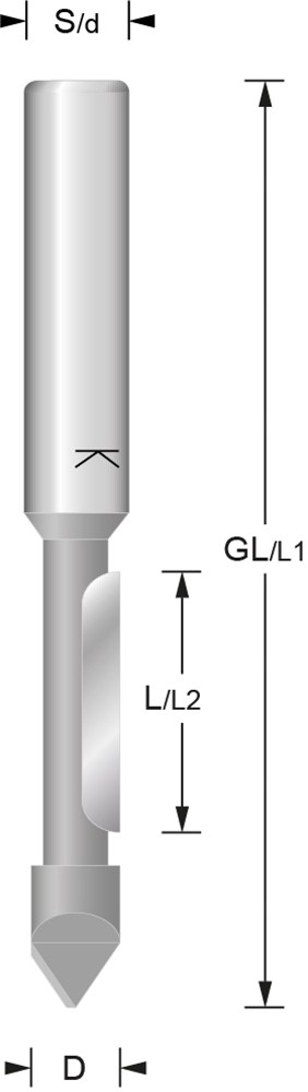 - Dakvorm punt voor inboren tophoek 60°