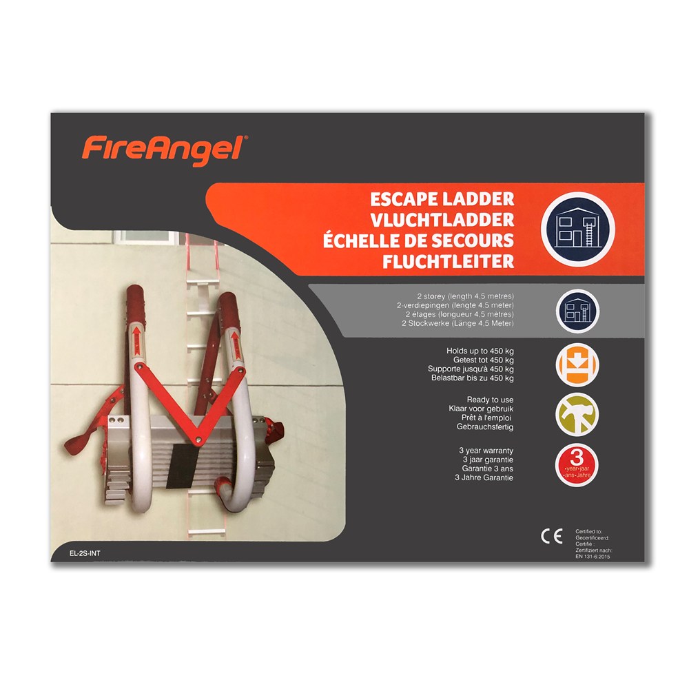 FireAngel stevige aluminium vluchtladder ideaal om te kunnen vluchten vanuit slaap- en woonkamers op de eerste verdieping. Direct te gebruiken zonder installatie.
