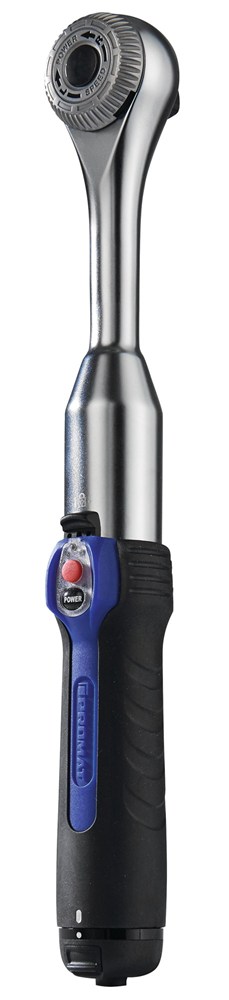 12,5 mm (1/2″)-vierkantaandrijving · Bijzonderheden: Snel, zuinig en krachten sparend. Via de geïntegreerde elektromotor worden schroeven en moeren tot een moment van ca. 1 Nm motoraangedreven geschroefd (max. 200 omwentelingen/minuut). Het vastzetten wordt daarna op conventionele wijze uitgevoerd. Maakt het werken 10 - 20 keer sneller. Technische gegevens: rechts/links omschakelbaar max. koppel in elektrische modus 1 Nm max. koppel in handmatige modus 610 Nm max. bedrijfstijd bij volledig geladen accu tot 2,5 uur verwisselbare lithium-ionen accu 3,6 V - 2 Ah laadtijd ca. 45 minuten (lading 80% in 30 minuten) laadindicator veiligheidsmechanisme (voorkomt per ongeluk inschakelen van de ratel) trilalarm (wanneer van automatische op handmatige modus overgeschakeld moet worden) ratelhoek 6° 60 tanden