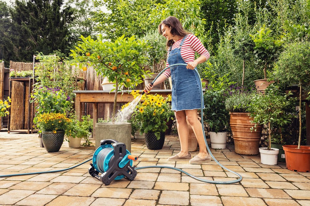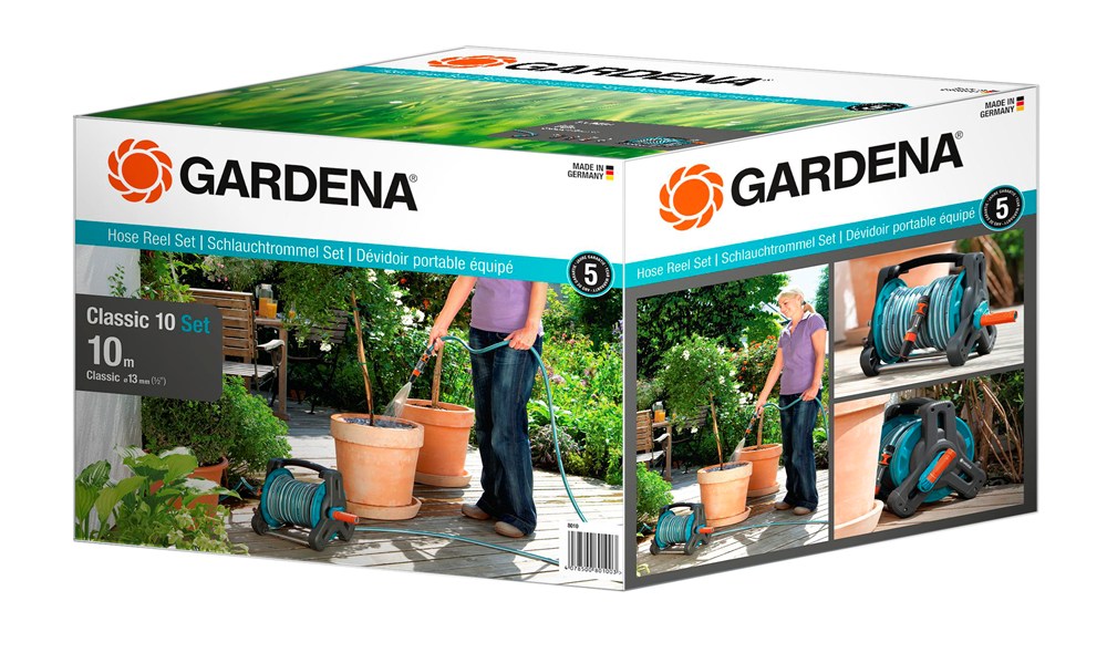 De Classic Slanghouder 10 Set van GARDENA is de ideale optie voor opslag van de tuinslang en besproeiing van kleine tuinen, patio's en balkons. Dankzij de vrijlopende handzwengel wordt de slang moeiteloos opgerold zonder te knikken of in de knoop te raken. Gemakkelijk op te bergen op een nette en ruimtebesparende manier. Dankzij hoogwaardige materialen en fabricage is de set duurzaam en bestand tegen dagelijks gebruik en onderhoudsvrij! De slanghaspelset kan direct worden gebruikt: Hij bestaat uit een kwaliteitsslang van 10 meter, alle noodzakelijke onderdelen van het Original GARDENA System en een praktisch reinigingssproeier. Dankzij het compacte design en de ergonomische, geïntegreerde handgreep is de haspel bijzonder praktisch en comfortabel om te dragen. Het driehoekige ontwerp en het lage zwaartepunt geven de haspel een hoge mate van stabiliteit. Nadat de waterkraan is dichtgedraaid, kan het uiteinde van de slang op de geïntegreerde druppelstop worden geschoven. Hierdoor wordt voorkomen dat er water lekt. De Classic Slanghouder 10 Set van GARDENA is vervaardigd in Duitsland en wordt geleverd met vijf jaar garantie.
