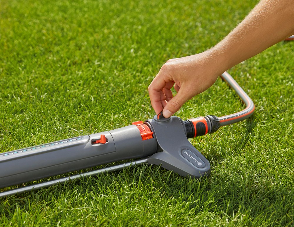 De zomertijd is de perfecte tijd voor de AquaZoom M van GARDENA. De zwenksproeier zorgt op betrouwbare wijze dat je gazon voldoende water krijgt - en vooral, dat het gelijkmatig wordt verdeeld. Geschikt voor oppervlakken tussen 9 en 250 m². De sproeier combineert een aantrekkelijke design met veel praktische functies. Geniet van elk moment van de zomer. Door de verschillende instellingsmogelijkheden kan je er zelf voor zorgen dat het water precies valt waar je het hebben wilt. Het bereik is instelbaar van 3–18 meter, de sproeibreedte van 3–14 meter en de waterstroom is ook reguleerbaar. Als je maar één kant water wilt geven, is dat ook mogelijk. Alles kan snel en eenvoudig worden ingesteld met behulp van de schuifregelaars. Vervolgens draai je de waterkraan open en kan je genieten van wat vrije tijd. Hoogwaardige materialen zijn in de AquaZoom M gebruikt om het apparaat bestand te maken tegen UV-straling en vorst. Het doordachte ontwerp helpt ook bij het schoonmaken. Kalkafzetting op de sproeimondjes kun je er gemakkelijk afvegen omdat deze van zacht kunststof zijn gemaakt. Vuildeeltjes worden opgevangen door het roestvrijstalen filter, dat zich in de wateraansluiting bevindt. Dit filter is eenvoudig uitneembaar en is zo schoon door het even onder stromend water af te spoelen.